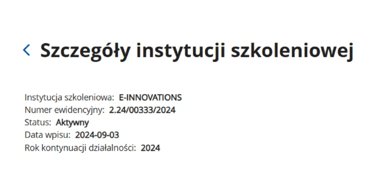 Posiadamy wpis do rejestru instytucji szkoleniowych (RIS)